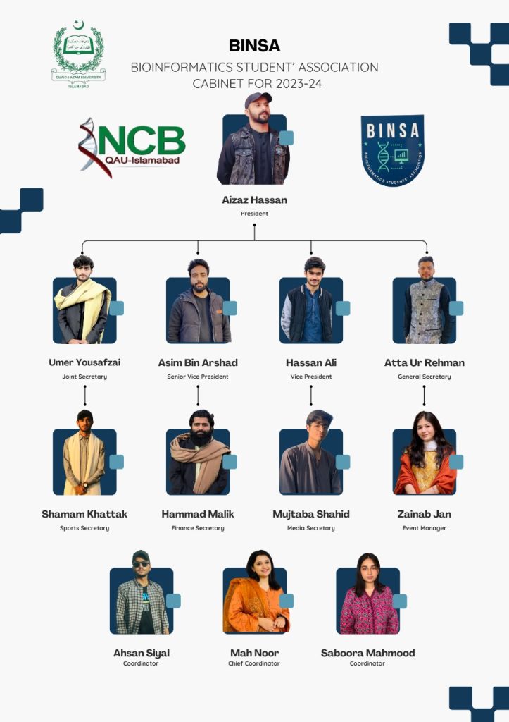 The name of the Association shall be BINSA. It shall be a non-political, non-profit, and voluntary organization founded by the National Centre for Bioinformatics (NCB), Quaid-i-Azam University (QAU), Islamabad in the Spring Semester 2015.